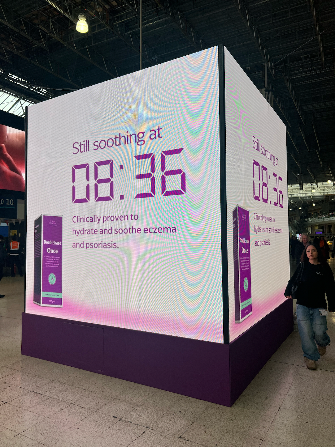 The campaign rolled out across six TV idents, digital, OOH and a full Waterloo Station takeover, where real-time messages turned 24-hour efficacy into useful, contextual media.